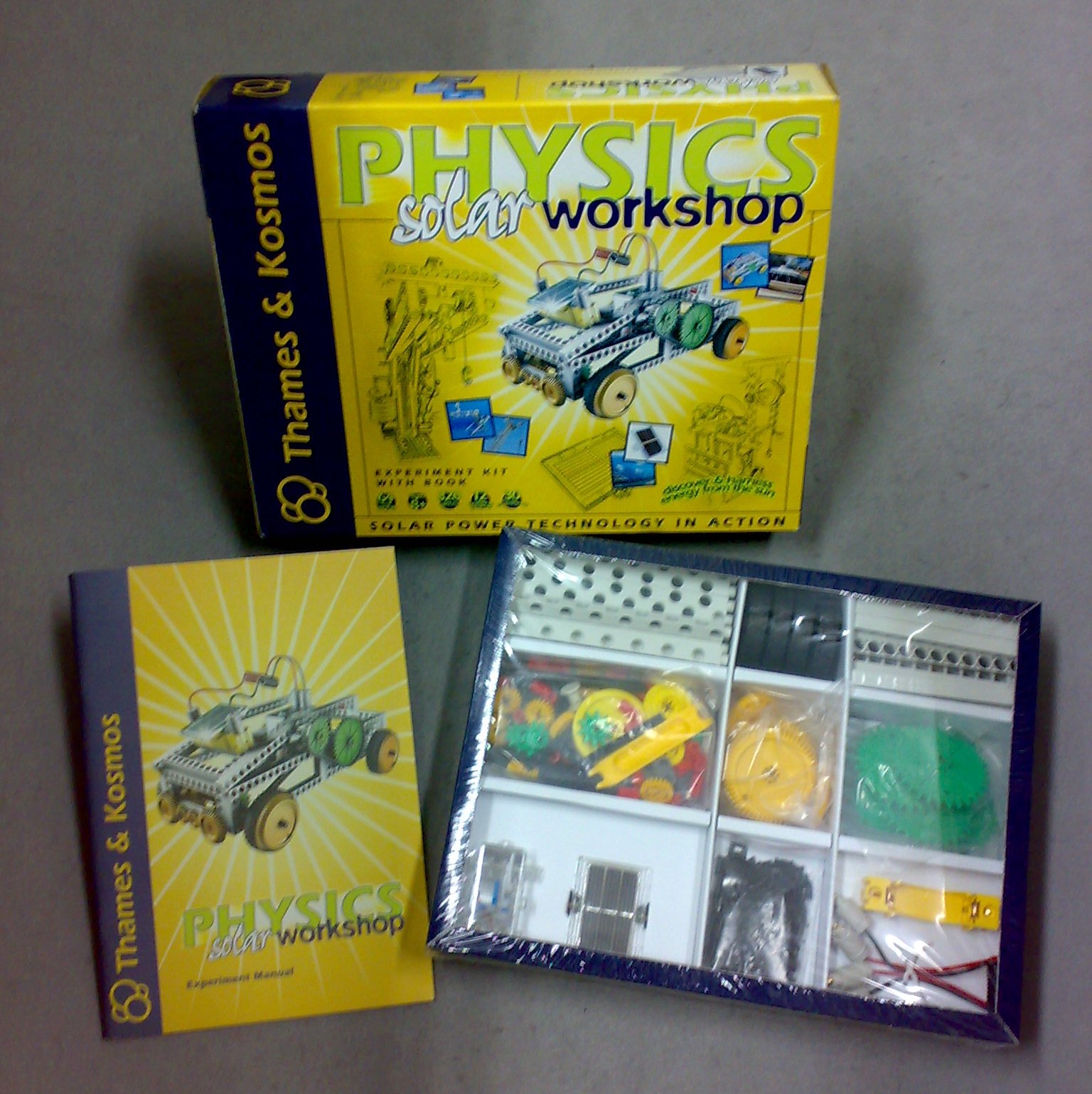 In one way or another, almost every form of energy we use originates as energy from the Sun. Solar energy directly powers photovoltaic cells and thermal collectors. Indirectly, we get power from plants grown by the Sun, oceans heated by the Sun, and Earth's weather systems sustained by the Sun. Even the energy stored in fossil fuels originated as energy from the Sun, captured by plants and animals millions of years ago. Physics Solar Workshop explores the topic of solar energy, focusing on photovoltaic cells. By building 12 models and conducting 30 experiments, you will learn how solar cells transform light into electrical energy, and how motors and mechanical devices can optimize the work done by this energy. Ages 8+
