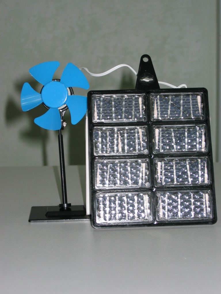 This kit contains solar cells and a motor for experimentation with solar power. It contains a number of solar cells that can be arranged individually or together to provide a greater current or voltage output as required.
