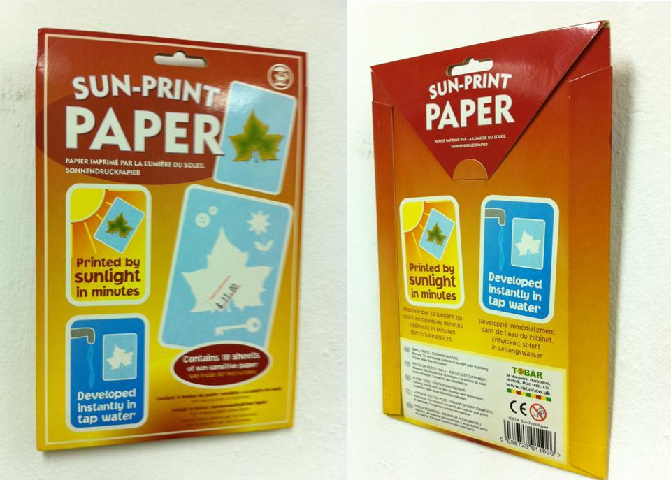 Contains 10 x A5 sheets of light sensitive paper. Place an object on the paper and expose to the sun for 2 minutes. Soak in water for 1 minute and the result is a clear white image on dark blue paper. No chemicals required. A great way of illustrating the process of photography.