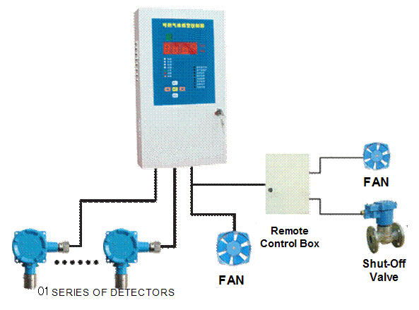 The system is known as a high sensitivity and fast response controller that uses a microprocessor control unit, high-performance catalytic gas sensors, or imported high-precision electrochemical sensors as the detectors. When the system detects or measures a concentration value that meet or higher than the preset alarm value, the controller immediately generates a sound and light alarm to alert the users. Also, it can control or activate the fans or other external devices. So that, it can help to prevent explosion, fire and poison matters happen. As a result, life and properties are safely protected and secured.